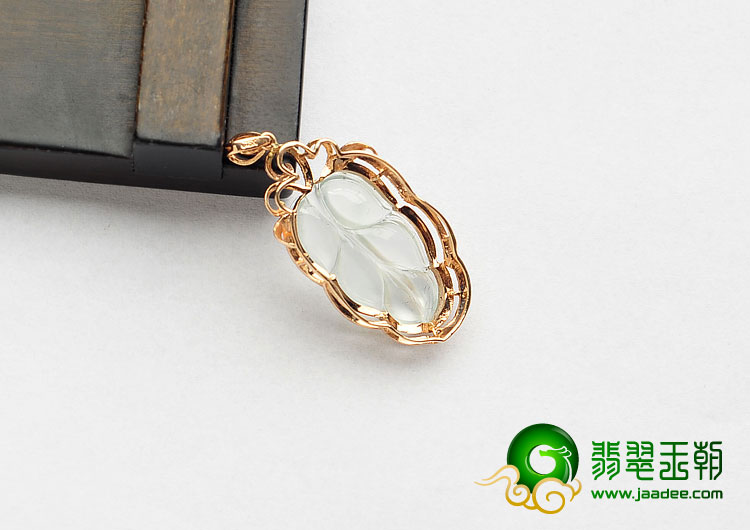 玻璃种无色缅甸翡翠A货镶玫瑰金金枝玉叶胸坠(真钻)