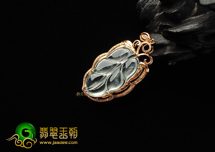 玻璃种无色缅甸翡翠A货镶玫瑰金金枝玉叶胸坠(真钻)