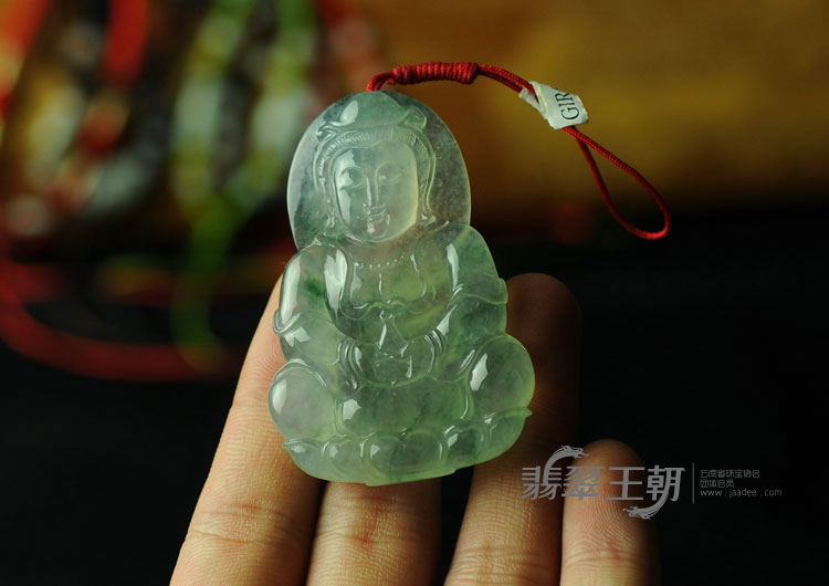 【必要说明】:质地为冰玻种,给人冰清玉莹的感受;些许轻盈淡雅的翠绿色,有些水彩画作的感觉;玉型厚装饱满,极有存在感;精雕细刻,工艺极佳,抛光完美;端坐普陀常入禅,众生有叩遍垂怜,身佩观音,逢凶化吉、遇难呈祥。