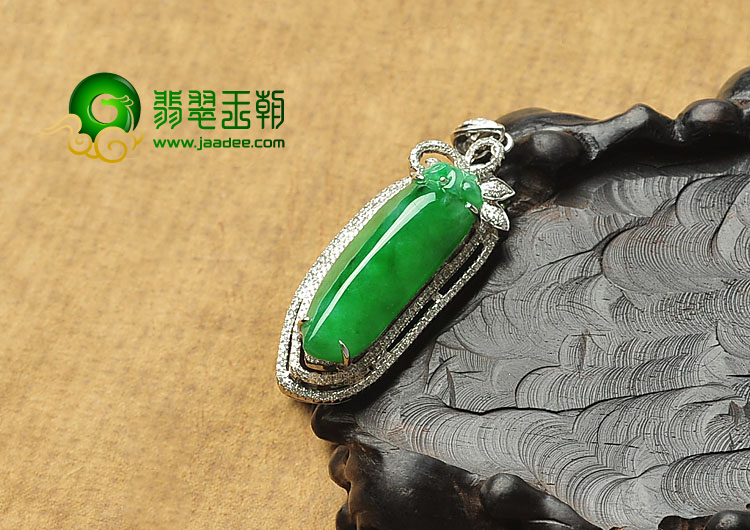 糯冰种翠色缅甸翡翠A货镶白金福瓜胸坠(真钻)