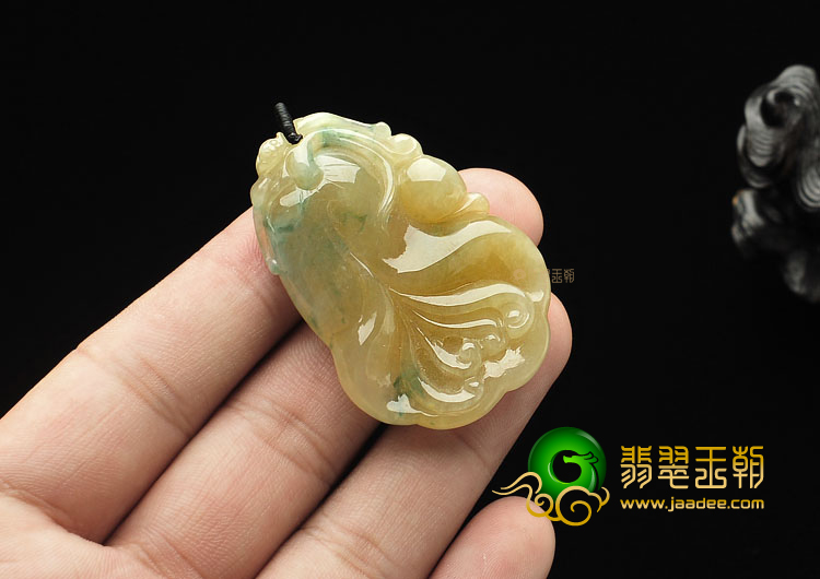糯冰种黄翡飘花缅甸翡翠A货玉兰花挂件