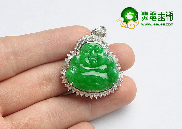 首页 >> 冰种正阳绿缅甸翡翠A货镶白金玉佛胸坠(真钻)