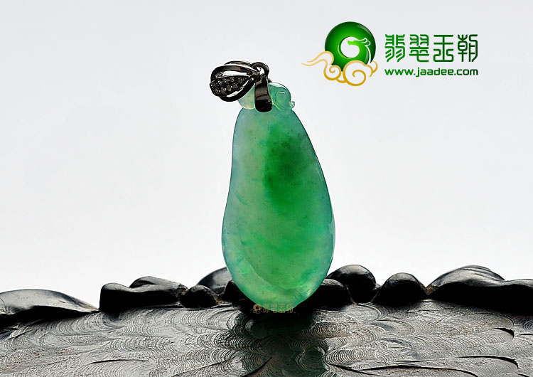 首页 >> 冰种翠色缅甸翡翠A货镶金扣福瓜挂件