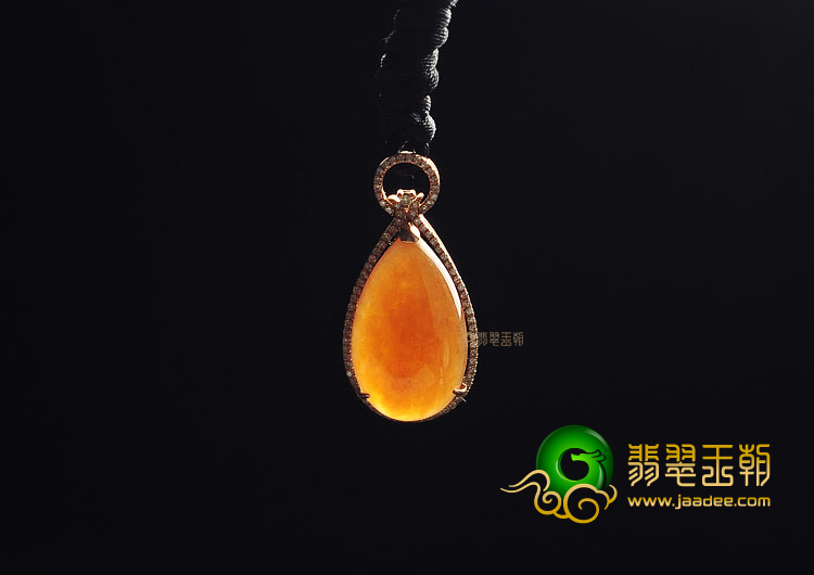 首页 >> 糯冰种红黄翡缅甸翡翠A货镶玫瑰金水滴胸坠(真钻)