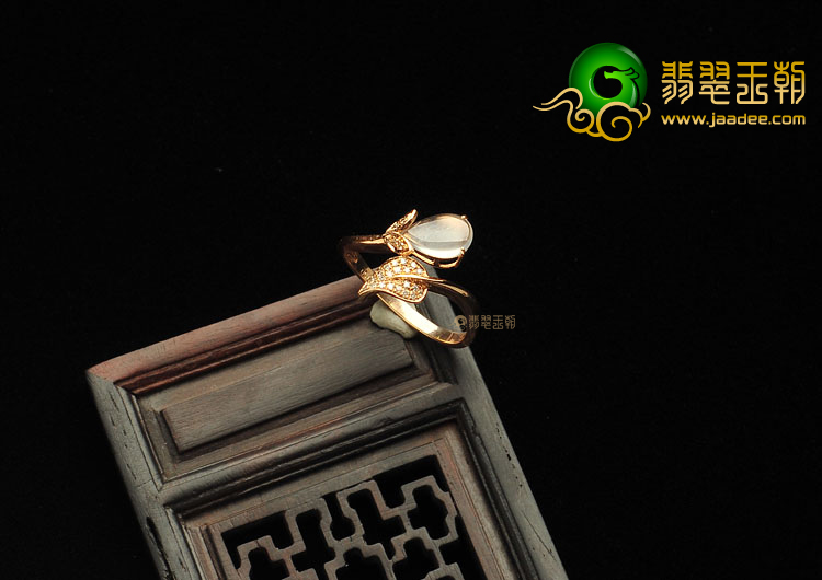 玻璃种无色缅甸翡翠A货镶玫瑰金戒指(真钻)