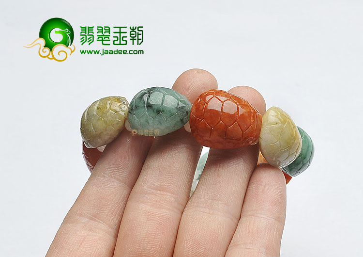 首页 >> 糯冰种三彩缅甸翡翠A货龟壳手链
