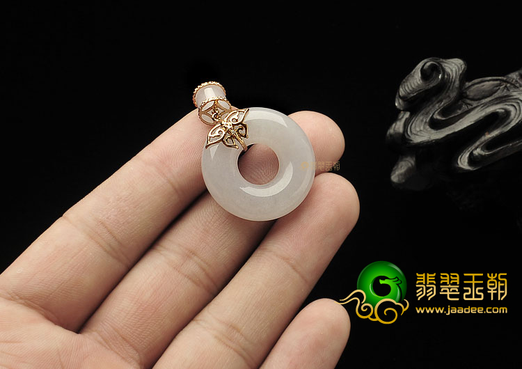 糯冰种无色缅甸翡翠A货镶玫瑰金平安环胸坠(真钻)