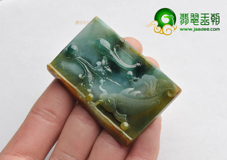 糯冰种三彩缅甸翡翠A货年年有余挂件