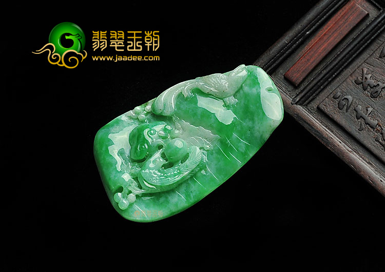 首页 >> 糯冰种翠色缅甸翡翠A货花开富贵挂件