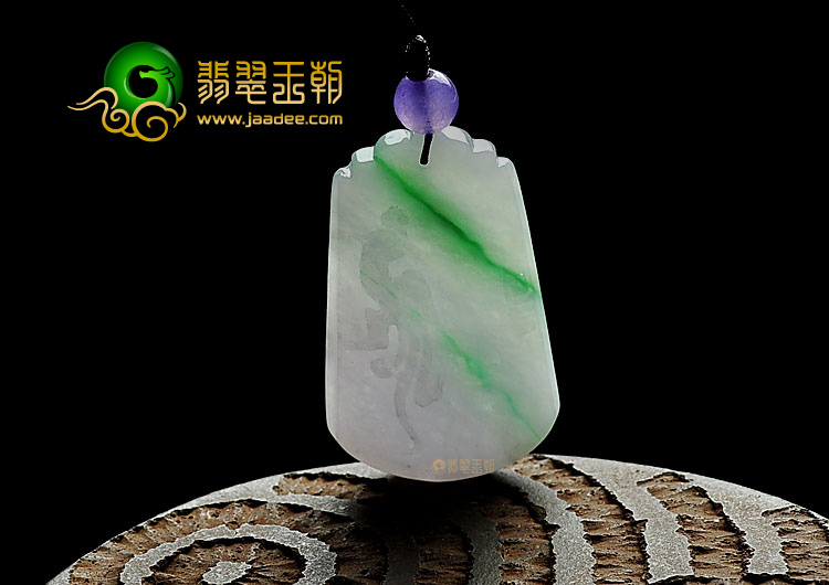 首页 >> 糯冰种春带彩缅甸翡翠A货仿古凤牌挂件