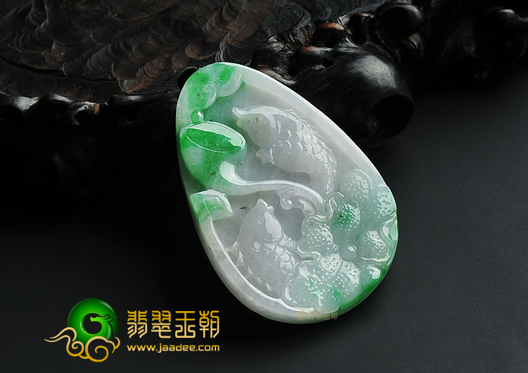 (超值推荐)糯冰种飘翠缅甸翡翠A货年年有余挂件