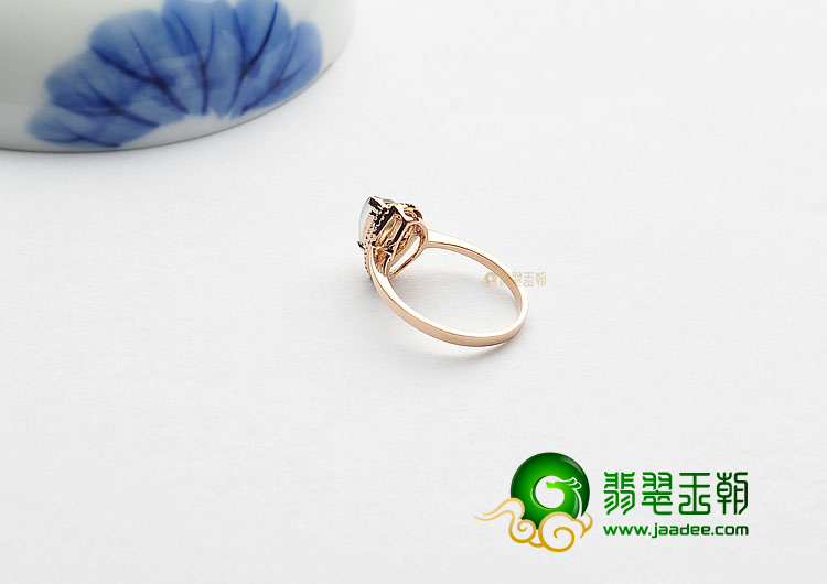 玻璃种无色缅甸翡翠A货镶玫瑰金戒指(真钻)