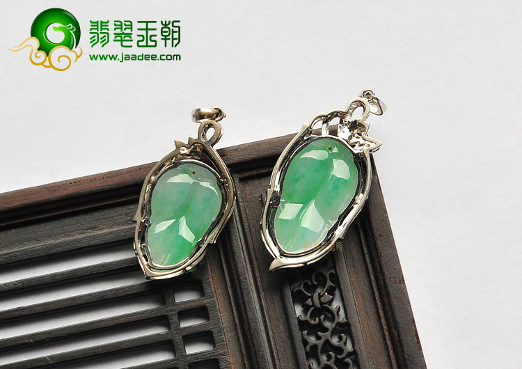 首页 >> 糯冰种飘花缅甸翡翠A货镶白金金枝玉叶胸坠(真钻)(一对)