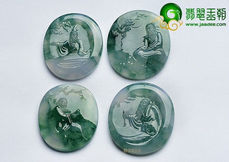 首页 >> (超值推荐)冰种飘花缅甸翡翠A货琴棋书画挂件(一套)