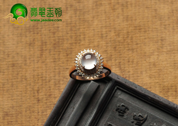 玻璃种无色缅甸翡翠A货镶玫瑰金戒指(真钻)