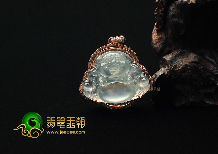 首页 >> 冰种淡晴水镶玫瑰金玉佛胸坠(真钻)