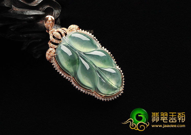 冰种飘花镶玫瑰金金枝玉叶胸坠(真钻)