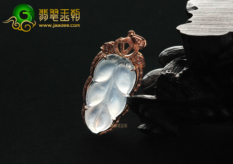 冰种无色镶玫瑰金金枝玉叶胸坠(真钻)