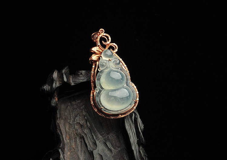 冰种淡晴水镶玫瑰金葫芦胸坠(真钻)