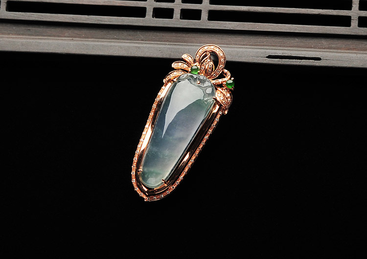 首页 >> 冰玻种淡晴水镶玫瑰金福瓜胸坠(真钻)