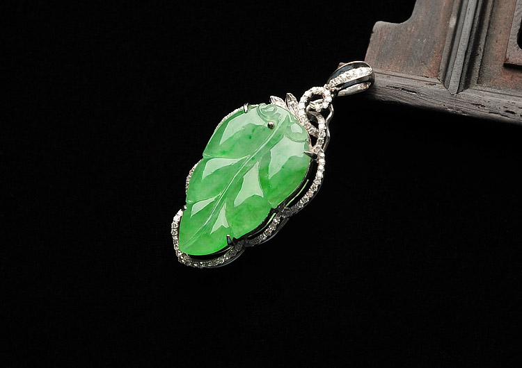冰种飘翠镶白金金枝玉叶胸坠(真钻)