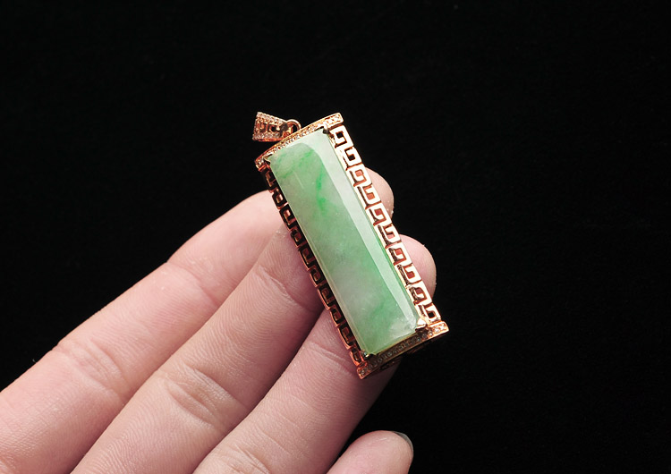 首页 >> 冰种略飘翠镶玫瑰金方牌胸坠(真钻)