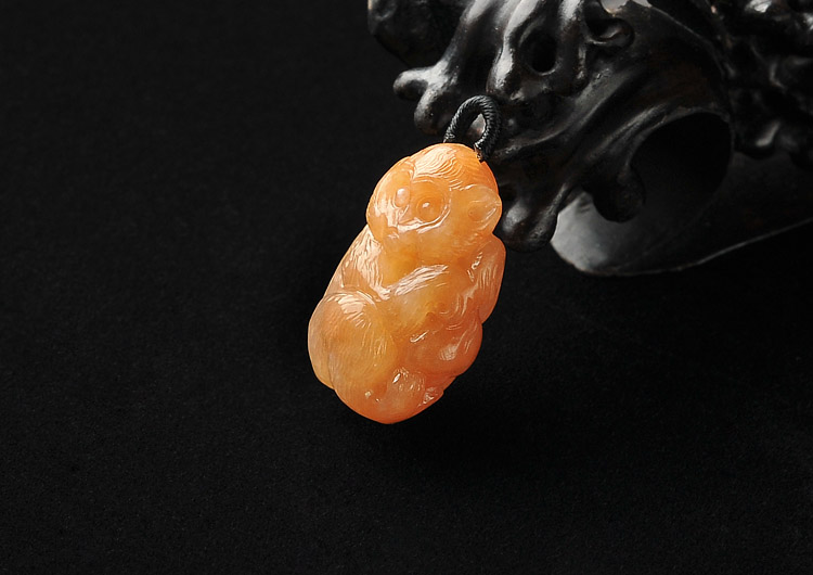 首页 >> 糯冰种红黄翡灵猴献寿挂件