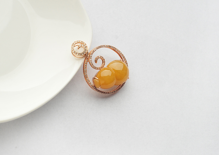 糯冰种黄翡镶玫瑰金葫芦胸坠(真钻)