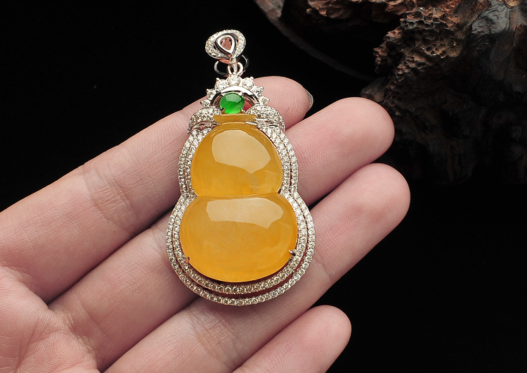 冰种黄翡镶白金葫芦胸坠(真钻)