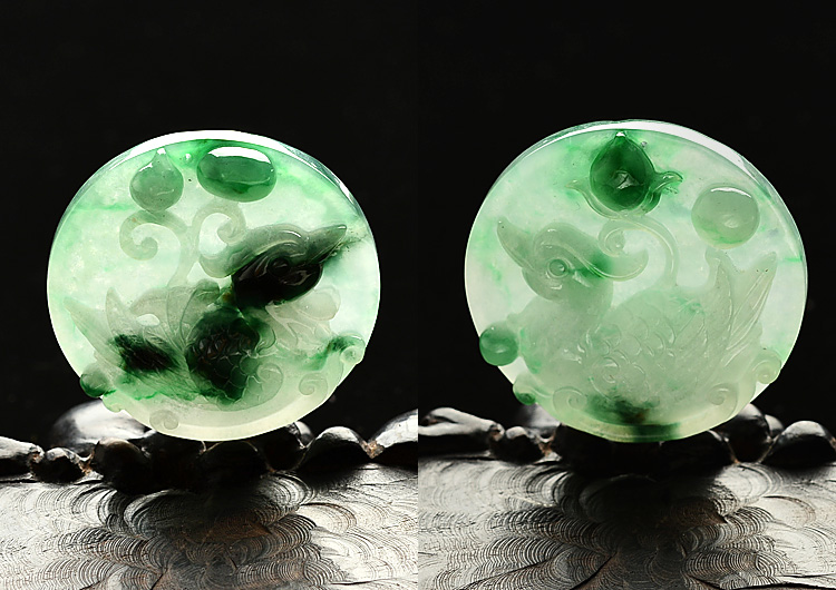 冰种飘花百年好合挂件(一对)