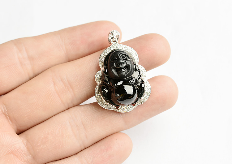 玻璃种墨翠镶白金玉佛胸坠(真钻)