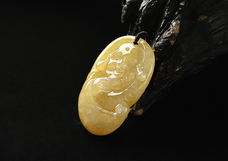 首页 >> (超值推荐)糯冰种黄翡玉佛挂件