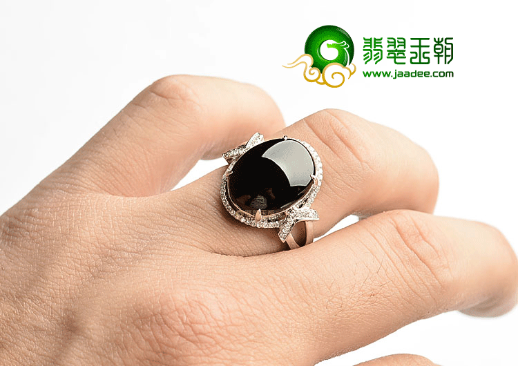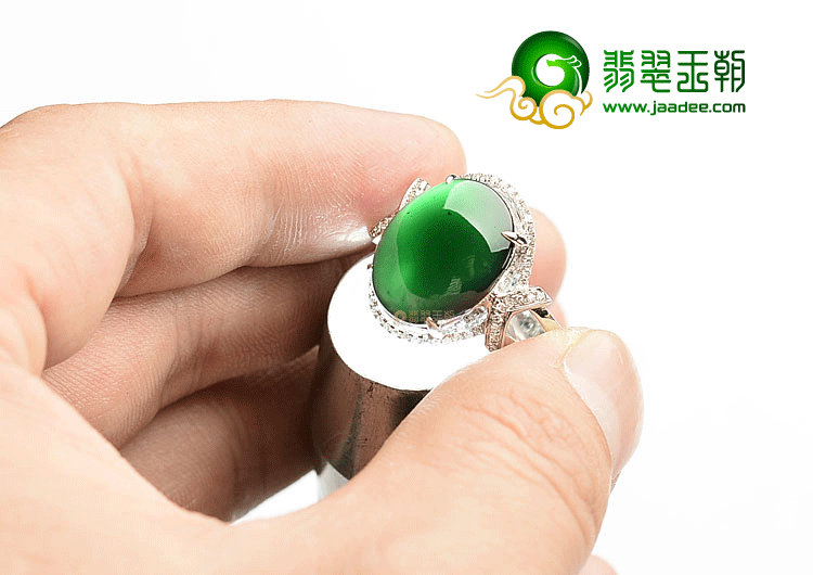 首页 >> 玻璃种墨翠镶白金戒指(真钻)