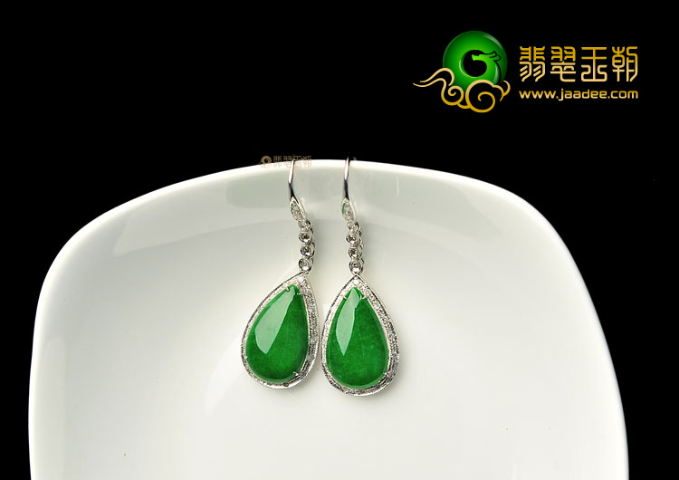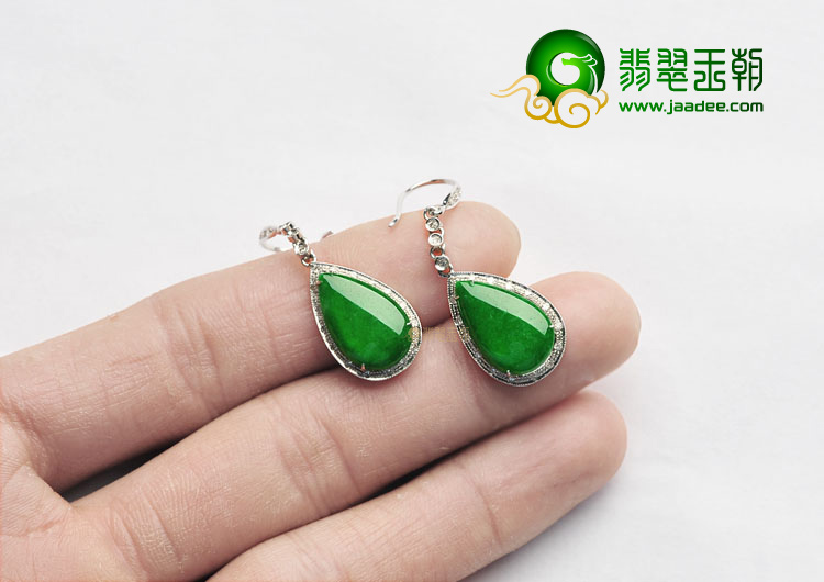 糯冰种正阳绿镶白金水滴耳坠(真钻)