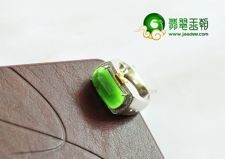 冰玻种墨翠镶白金戒指(真钻)