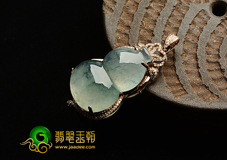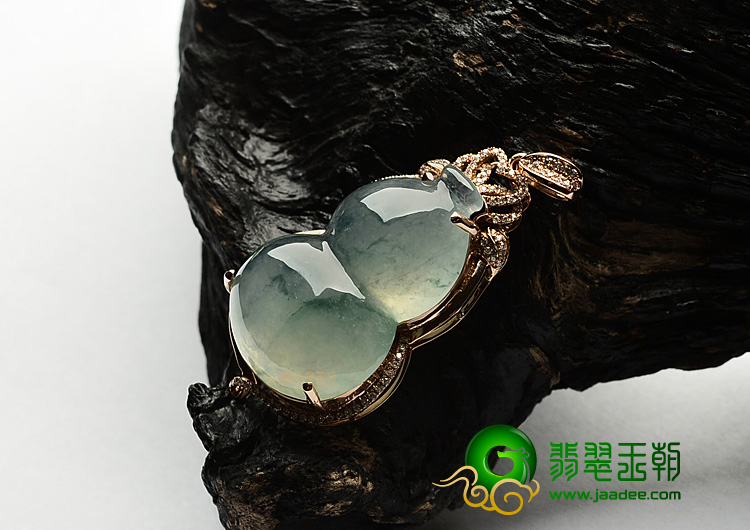 冰玻种飘花镶玫瑰金葫芦胸坠(真钻)