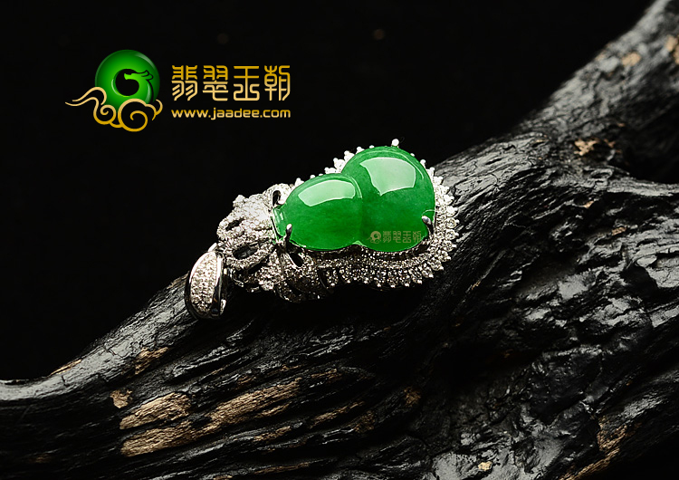 冰种阳绿镶白金葫芦胸坠(真钻)