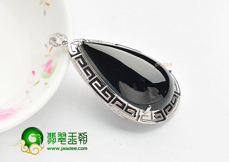 首页 >> (超值推荐)糯冰种墨翠镶白金水滴胸坠(真钻)
