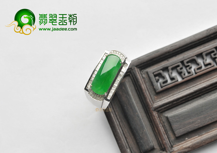 首页 >> (超值推荐)冰种阳绿镶白金钻石戒指(男戒)