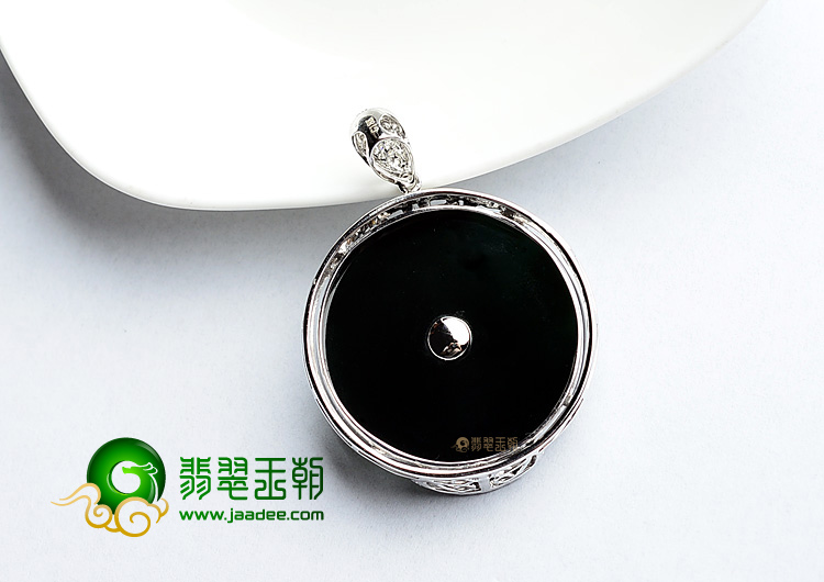 首页 >> (超值推荐)玻璃种墨翠镶白金平安扣胸坠(真钻)