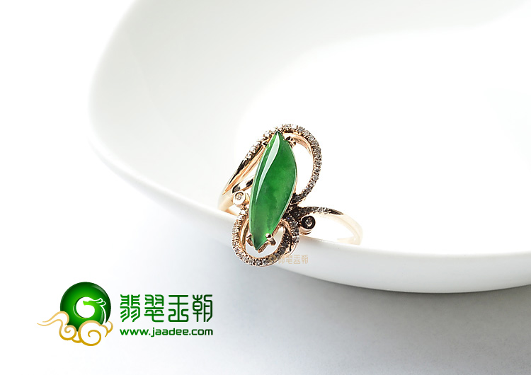 (超值推荐)冰种蓝绿镶玫瑰金随形戒指(真钻)