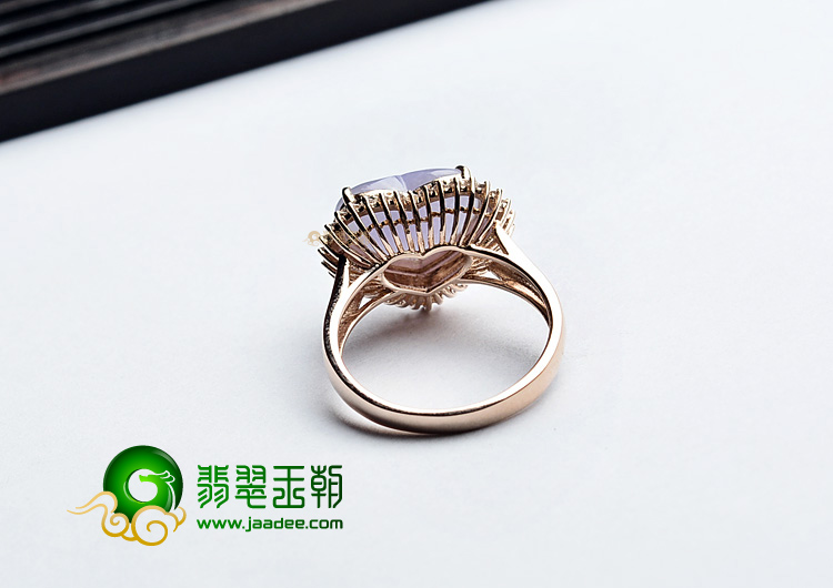 糯冰种紫罗兰镶玫瑰金心形戒指(真钻)