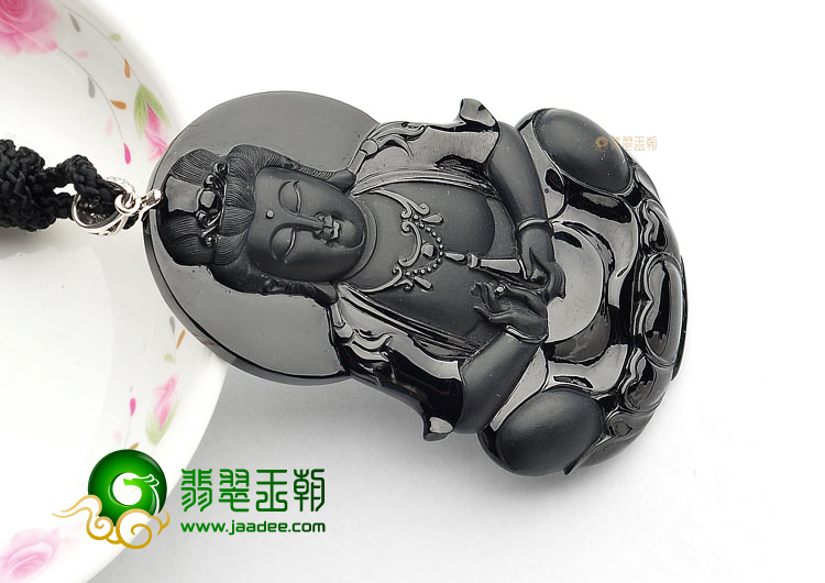 首页 >> (超值推荐)冰玻种墨翠带金扣观音挂件(真钻)