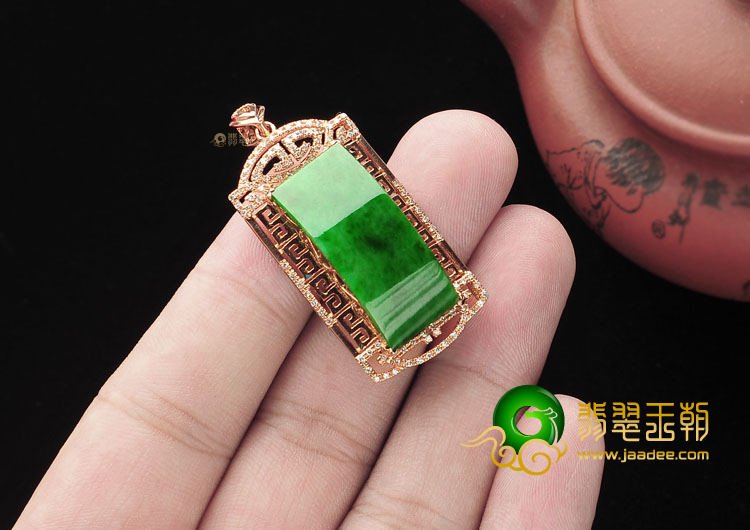 首页 >> (超值推荐)糯冰种浓绿镶玫瑰金胸坠(真钻)