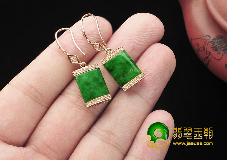 糯冰种浓绿镶玫瑰金耳坠(真钻)