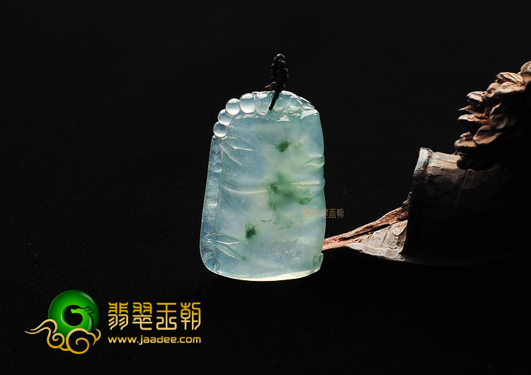 冰玻种飘花节节高挂件,玉质细,水头好,飘花色清晰,散落随意,尺寸小巧,节节高雕刻简单自然,上身后灵秀可爱,略有棉,但瑕不掩瑜。