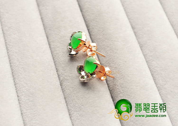 冰种阳绿镶玫瑰金白金钻石耳钉