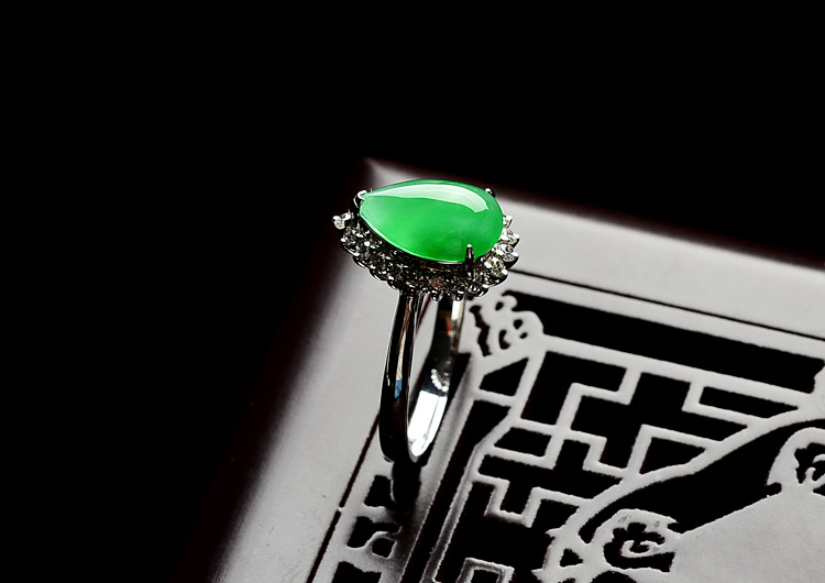 (超值推荐)冰种阳绿镶白金水滴戒指(真钻)