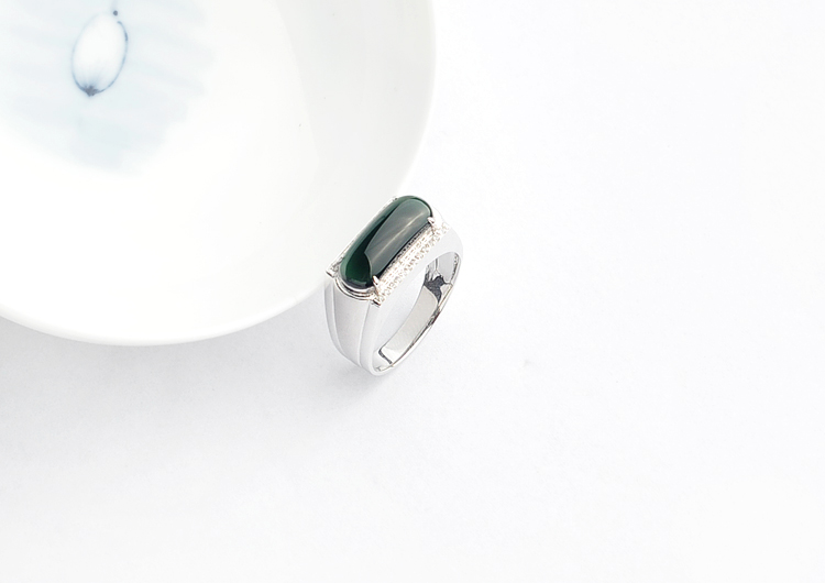 首页 >> (超值推荐)玻璃种墨翠镶白金钻石马鞍戒