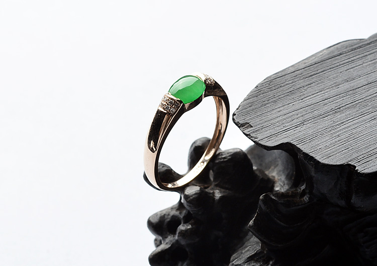 (超值推荐)冰种黄秧绿镶玫瑰金戒指(真钻)